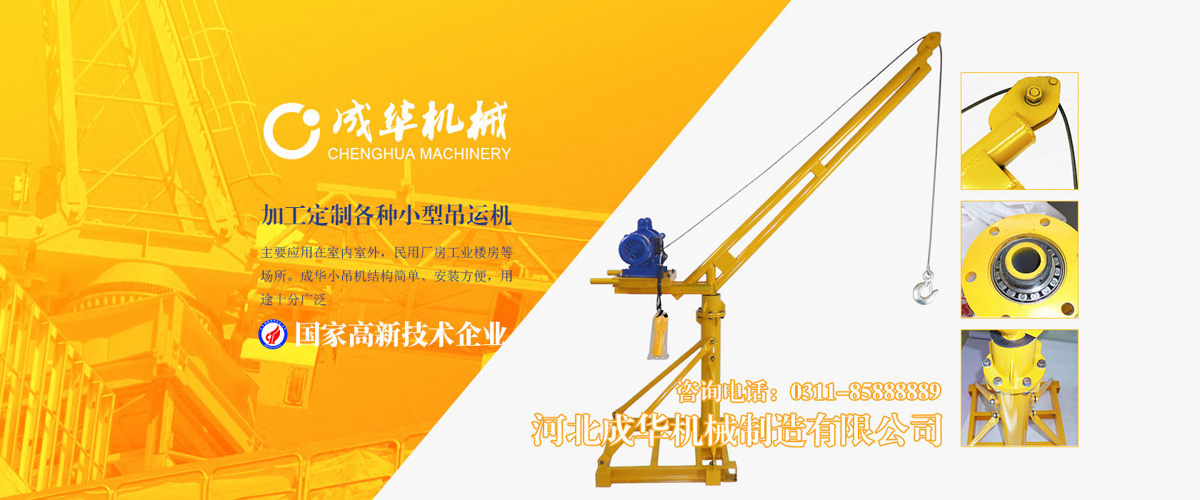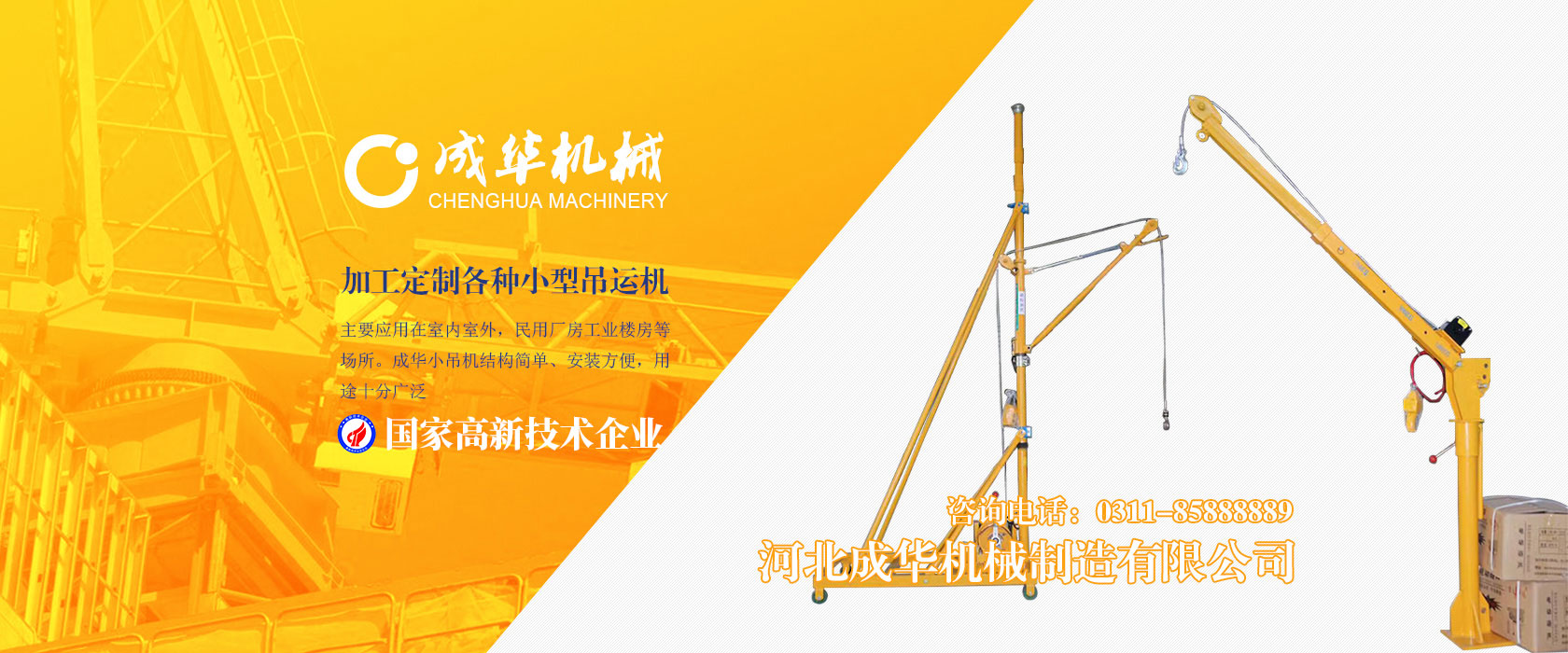 河北成華機械制造有限公司為國家高新技術企業(yè),旗下吊運機制造廠是家專業(yè)生產(chǎn)制造便攜式小吊機、手提式小吊機附屬工廠,我廠產(chǎn)品主要應用在室內(nèi)室外,民用廠房工業(yè)樓房等場所。成華小吊機結構簡單、安裝方便,用途十分廣泛,小吊機產(chǎn)品被廣泛應用于機械制造、電子、汽車...